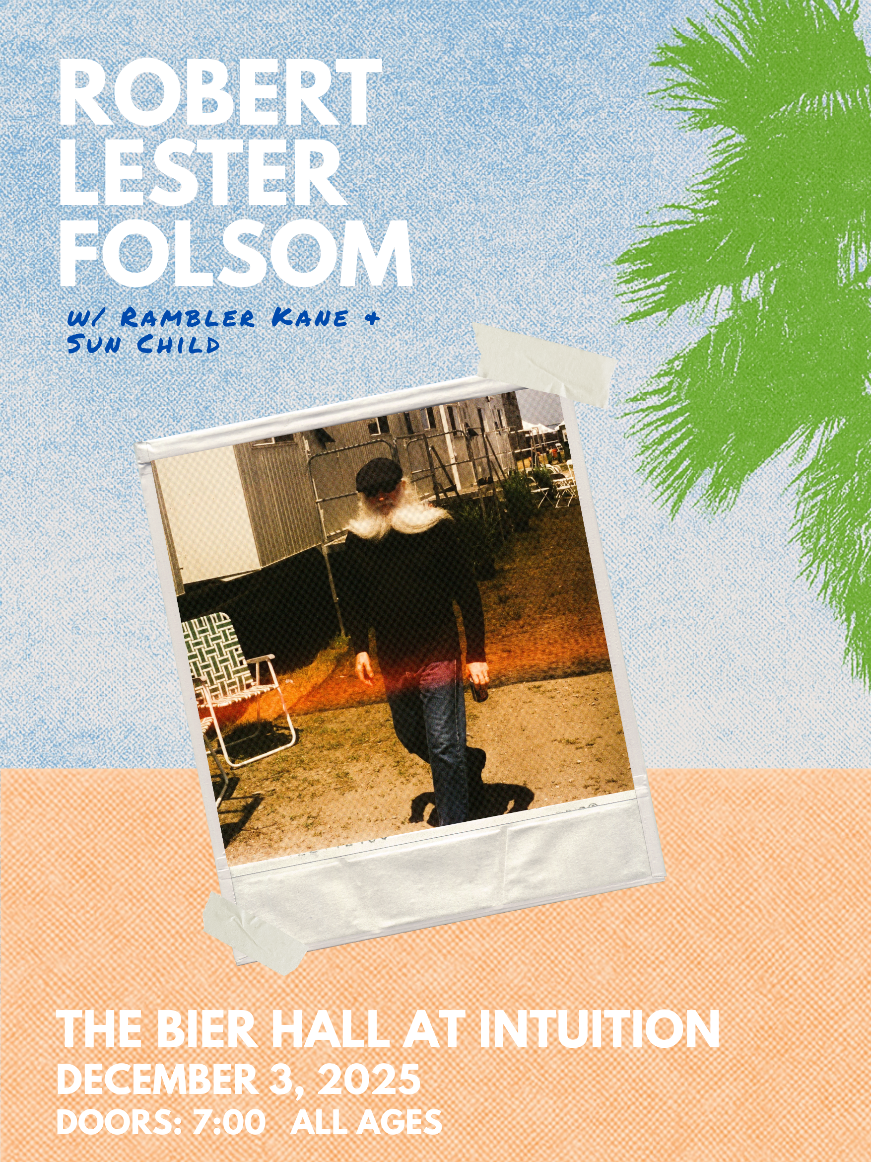 We are so excited to announce that Robert Lester Folsom will be playing a hometown show at the Bier Hall on December 3rd! He will be joined by Rambler Kane and Sun Child.