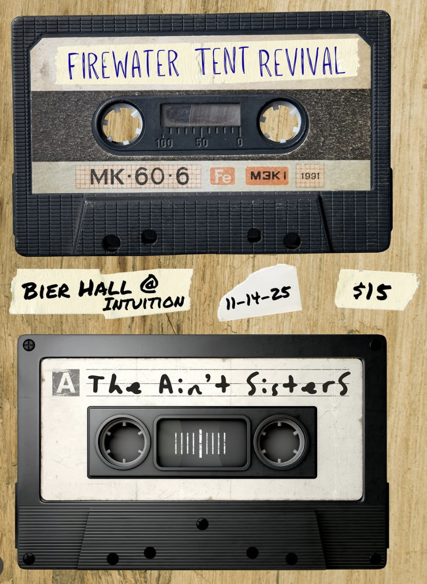 We are excited to announce that Firewater Tent Revival will be returning to the Bier Hall on November 14th! They’ll be joined by extra special guests The Ain’t Sisters. Tickets are only $15.